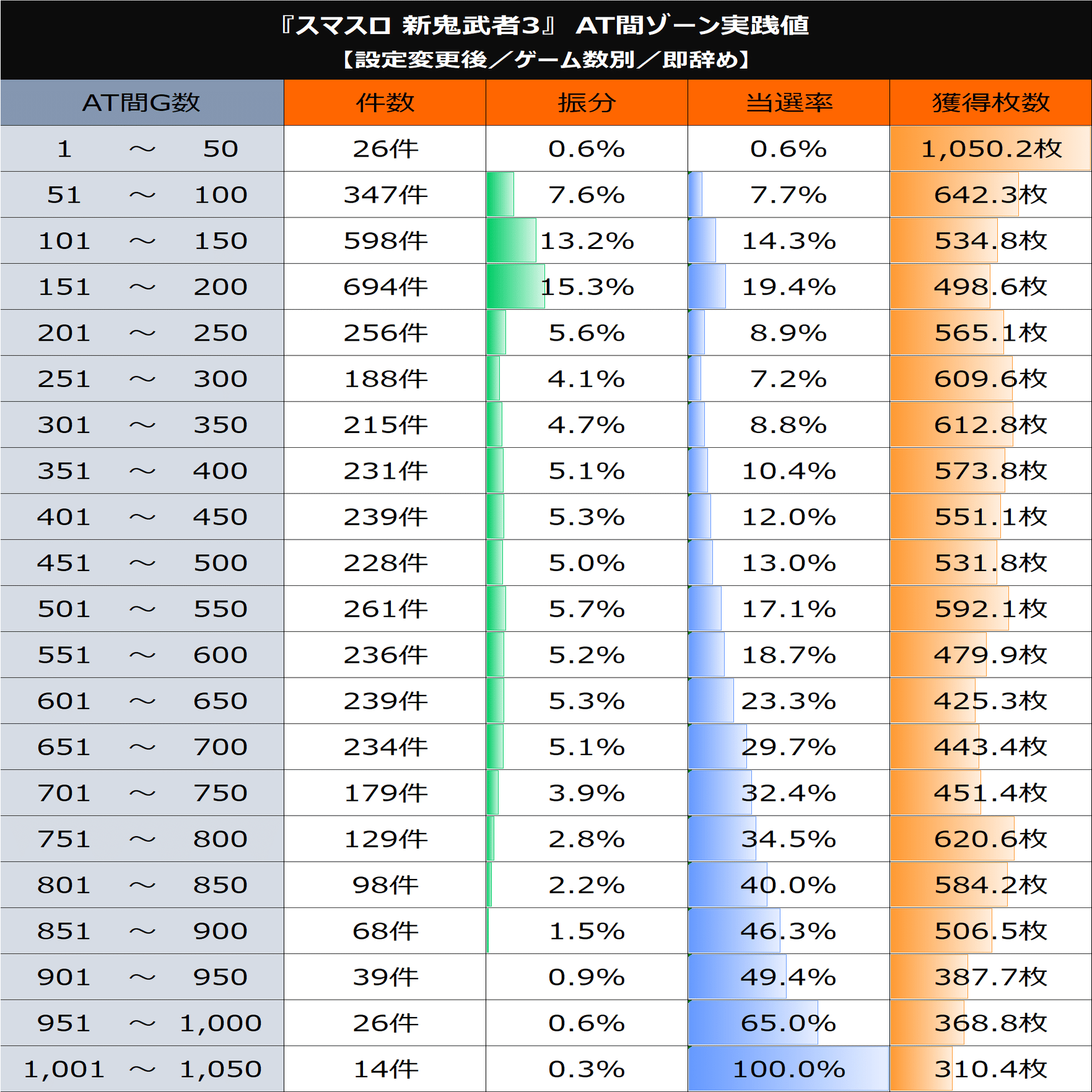基本的は周期到達からの前兆を挟んで当選する為、ゲーム数のバラつきはありますが100-200付近はやや当選率も高い為1周期当選もそれなりに期待できると思われます。
