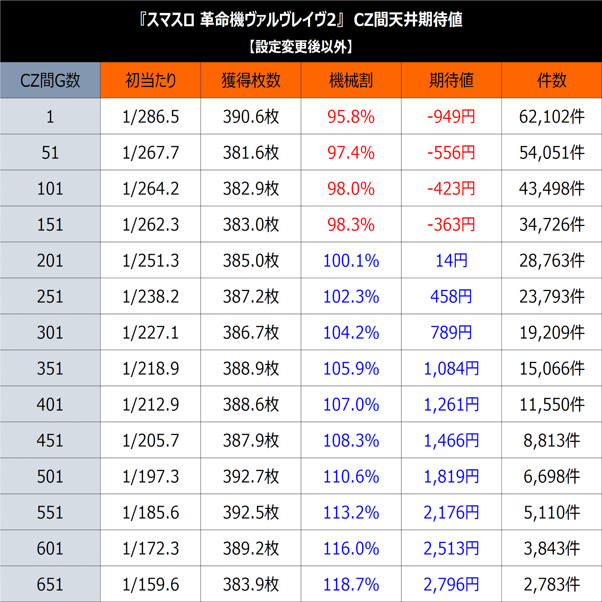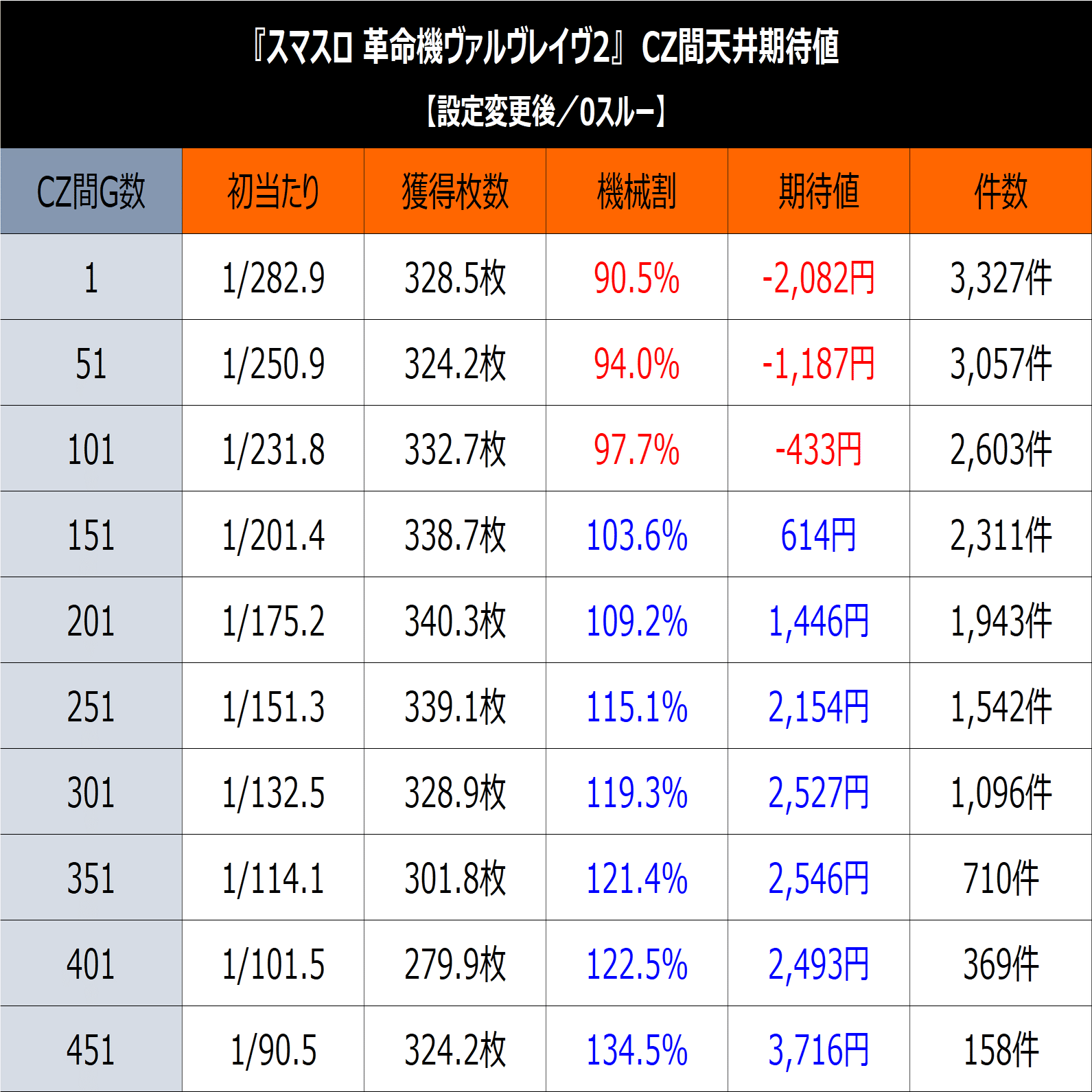 CZ間はそれなりにハマっていないと期待値が取りにくい算出となりました。