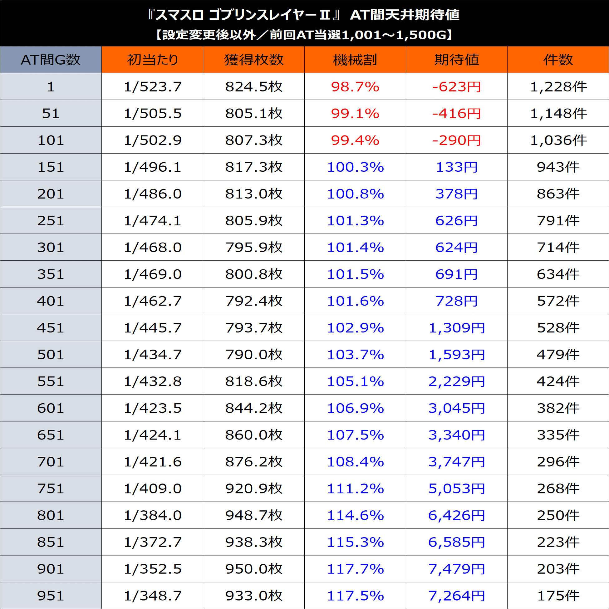 「AT間×設定変更後以外×前回AT当選1,001~1,500G」