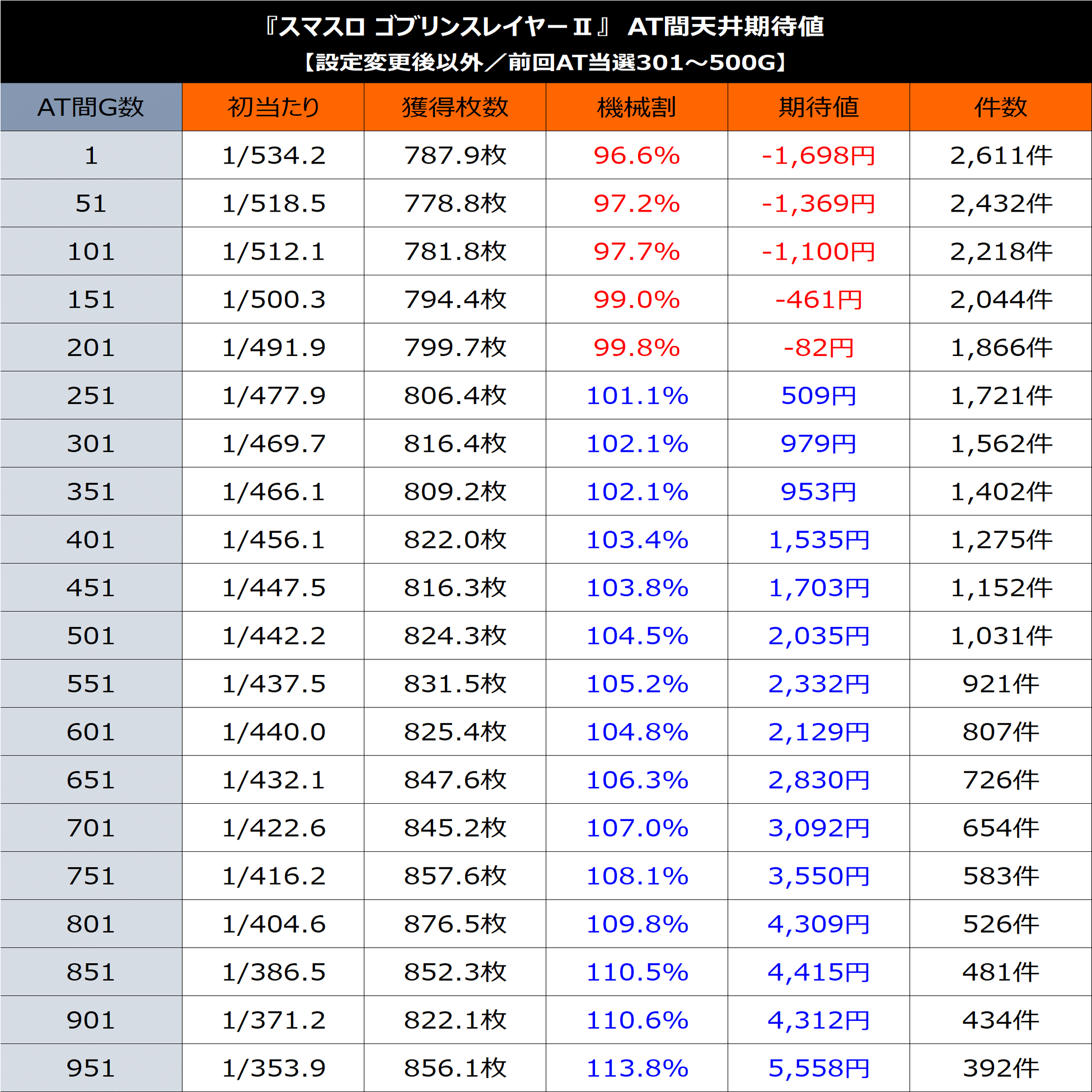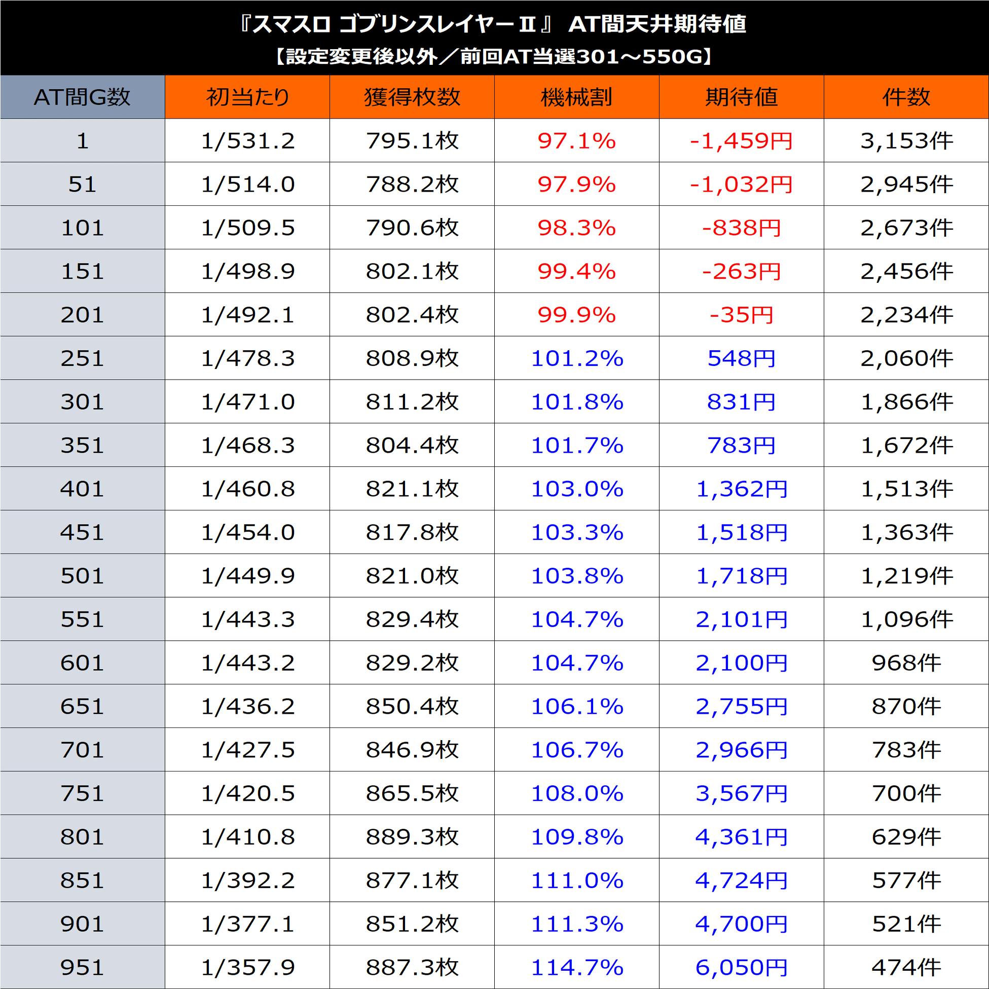 「AT間×設定変更後以外×前回AT当選301G~550G」