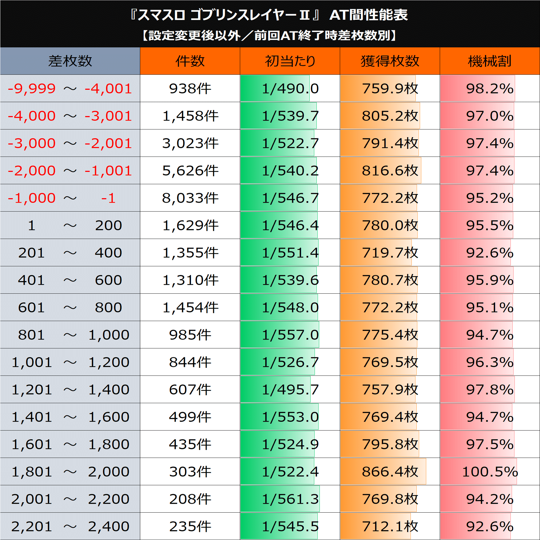 「AT間×設定変更後以外×前回AT終了時差枚数別」