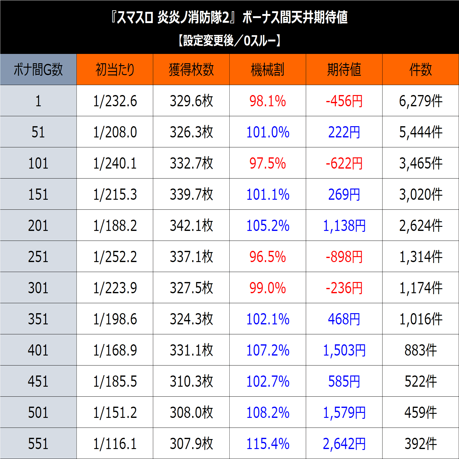 【L炎炎ノ消防隊2】期待値&狙い目まとめ(ボーナス間、ST間、スルー回数、差枚数、ゾーン狙いetc)|期待値ツール付き